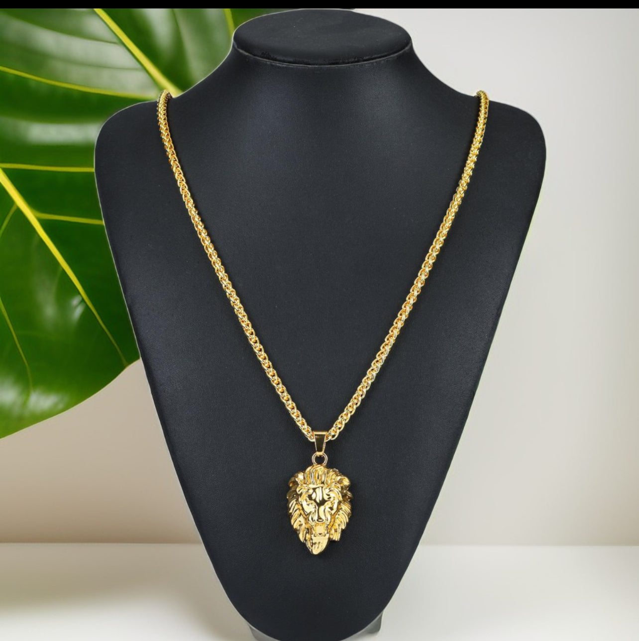 Make a bold statement with this gold lion head pendant necklace, a symbol of strength, power, and leadership. Crafted with intricate detailing, the lion pendant exudes confidence and regal elegance. The high-quality gold-tone chain adds a luxurious touch, making it perfect for both casual and formal wear.